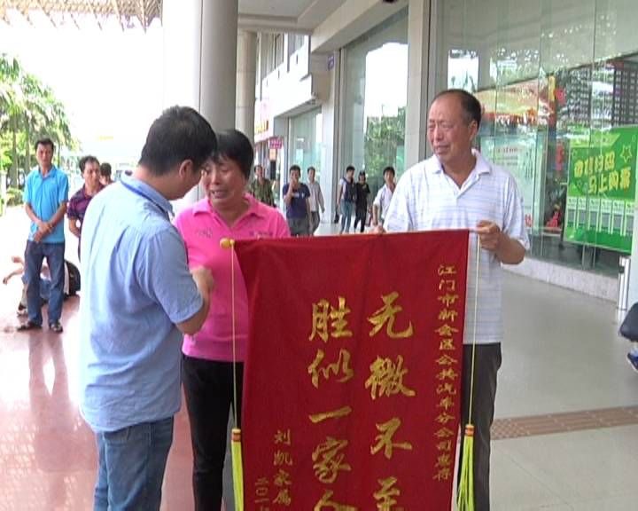 5月31日上午,刘先生妻子任女士等家人以及刘先生所在公司的代表分别向江门汽运集团、江门公汽新会分公司赠送了锦旗,以表达他们感谢之情。