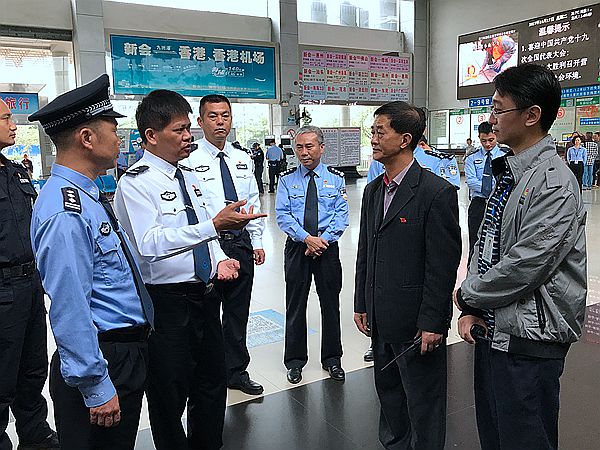 10月16日、17日,江门市副市长高诚苗带领市直、蓬江两级公安部门主要领导,到市汽运集团下属江门、新会两个汽车总站检查和指导安保维稳工作,市汽运集团党委书记、董事长吕俊杰,以及江门、新会汽车总站领导一起陪同检查。