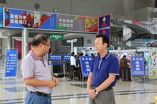 10月19日,在十九大召开之际,江门市国资委主任卢国壮、市建设集团董事长陈中坚,到江门汽车总站对十九大防护期安保维稳工作进行“回头看”,市汽运集团党委书记、董事长吕俊杰,以及江门汽车总站林仲尧总站长等一起陪同检查。