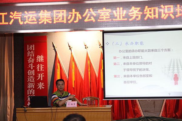 为全面提升各单位办公室管理人员的业务技能,5月11日下午,集团公司在13楼会议中心举办了一期《谈办公室工作》的技能培训。由集团集团公司总经理区海棠主讲,集团各部门业务骨干及各单位分管宣传工作的主要领导、办公室主任及部分通讯员代表参加了培训。