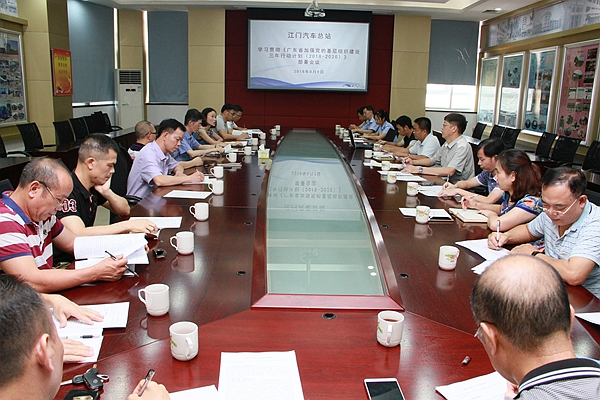 8月9日,江门汽车总站党委召开扩大会议学习贯彻《广东省加强党的基层组织建设三年行动计划(2018-2020)》部署会议,该站党委书记林仲尧同志传达集团公司学习贯彻“三年行动计划”部署会议的精神和布置该站党委贯彻落实“三年行动计划”有关工作以及总站下半年党建重点工作。林仲尧书记对参会的党委委员、支部书记和各支部委员在工作上提出几点要求: