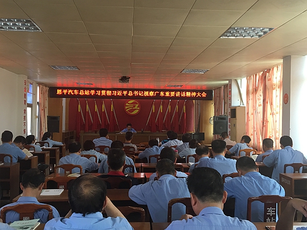 近日,恩平汽车总站召开学习贯彻习近平总书记视察广东重要讲话精神大会,该站在职党员及中层以上干部参加学习。