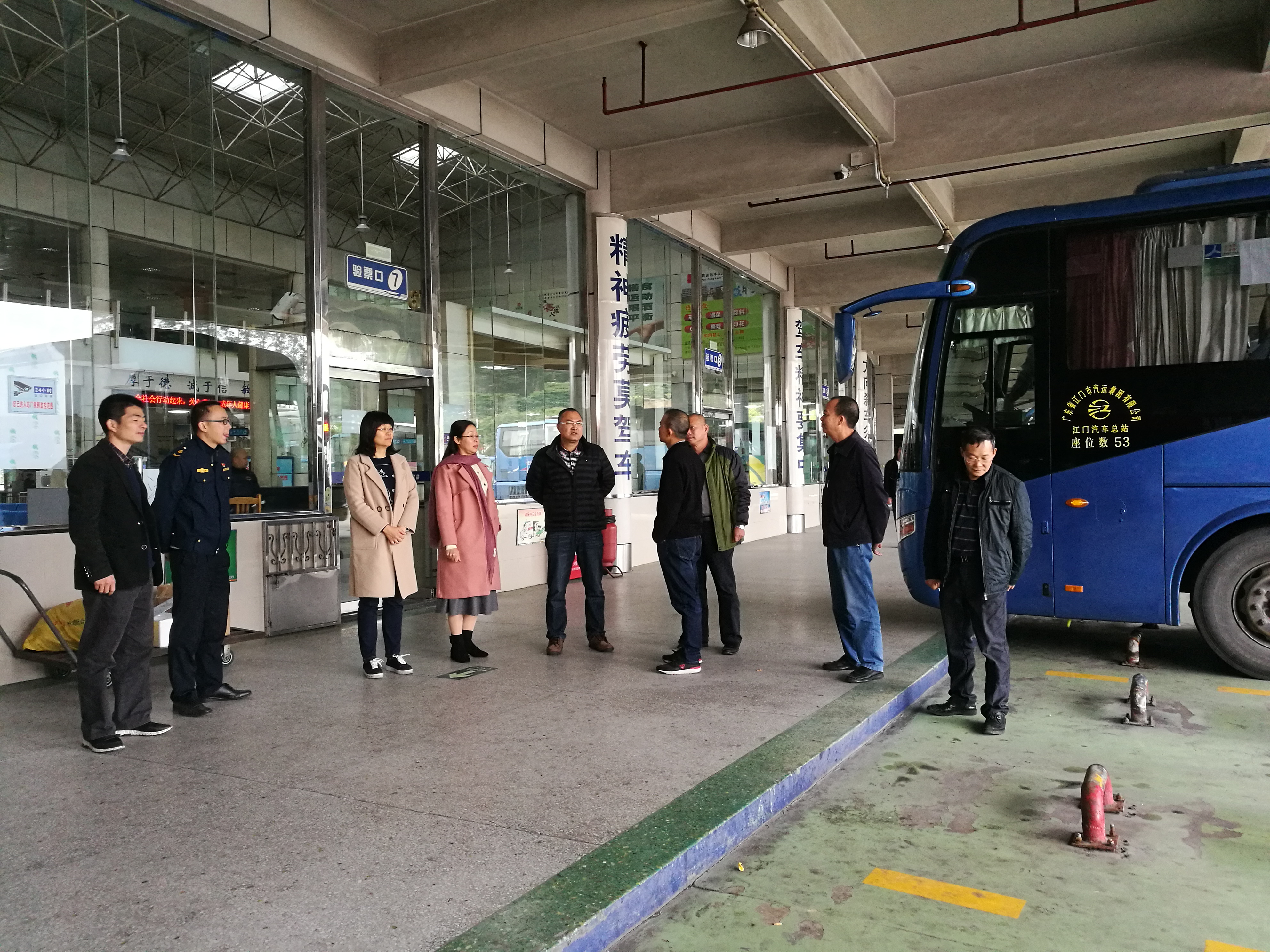 1月16日下午,江门市交通运输局副局长谢家骏同志带领检查组到鹤山汽车总站检查指导春运前安全生产工作,江汽运集团党委副书记、工会主席冯洁文,鹤山市交通运输局相关领导及鹤山汽车总站班子成员等陪同检查。