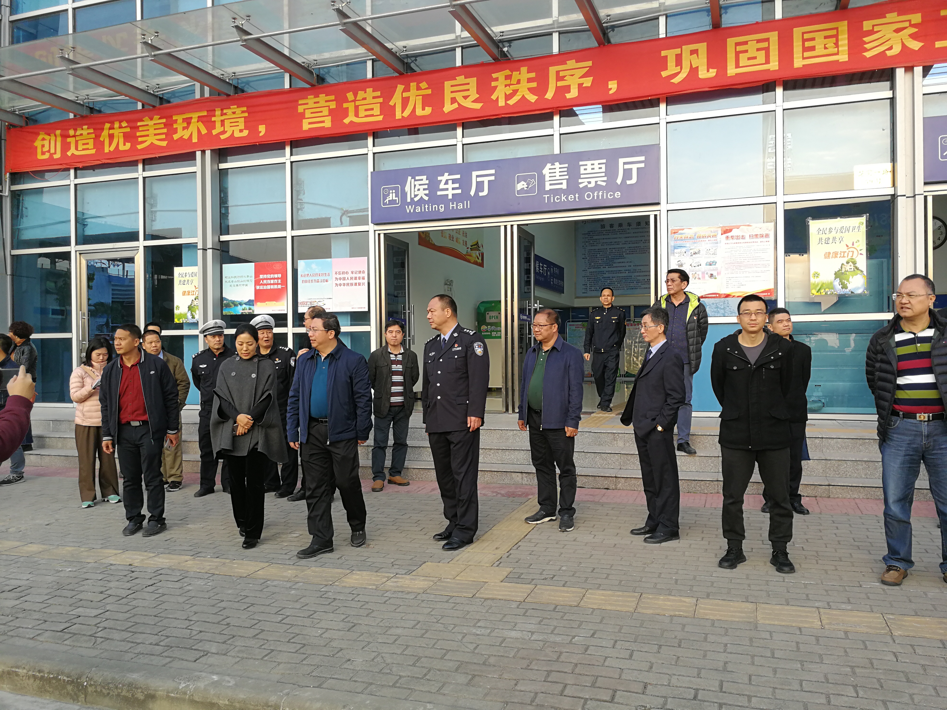 1月21日春运第一天,江门市副市长林飞鸣同志领队到江海汽车客运站、城轨公交站进行春运检查工作。