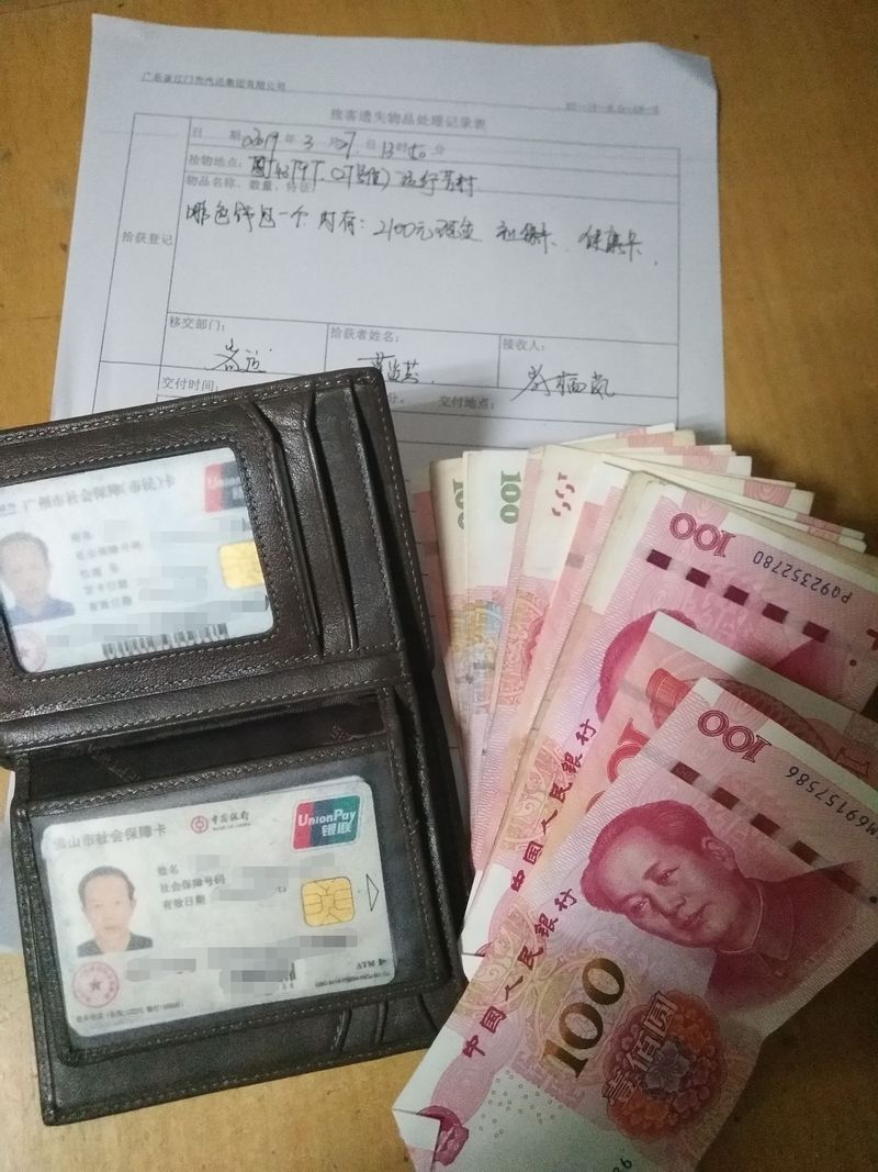 莫炎芬立即将钱包拿至广播室进行登记,经现场清点,内含2100元人民币以及银行卡、健康卡等相关证件。为尽快联系到失主,广播员李小燕致电运调部门,告知调度员如有失主寻找钱包,让其与广播室联系认领。约两个小时后,失主岑先生来到广播室认领回钱包时激动得说不出话。他说意想不到还能找回钱包,一个劲儿地说要请该服务员吃饭表达谢意,但她们婉拒了。