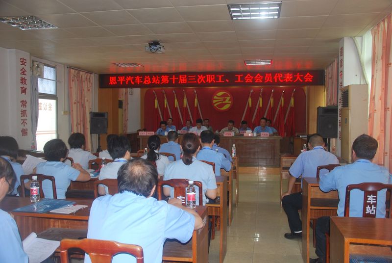 4月17日下午,恩平汽车总站在该站三楼会议室召开第十届三次职工、工会会员代表大会。大会由党总支副书记、工会主席岑能斌主持,共有正式代表39人、列席代表5人参加,集团公司党委副书记、总经理区海棠,恩平市总工会常务副主席吴子健,恩平市交通运输局副局长吴雪锋等领导出席会议并讲话。