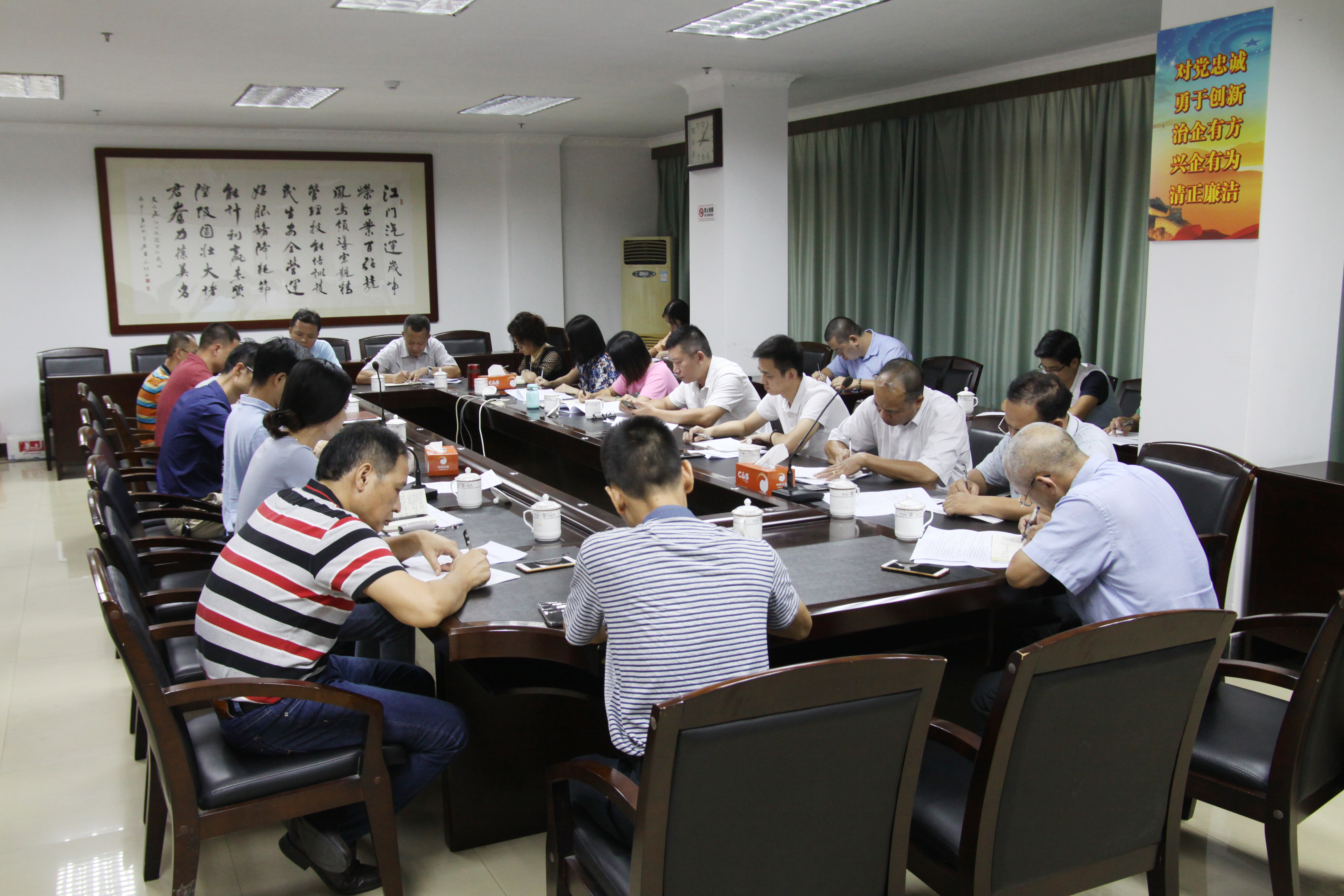 8月28日,集团公司在九楼会议室召开2019年创文迎检工作部署会。集团公司创文迎检工作小组以及属下江门汽车总站、新会汽车总站、江海汽车客运站、江门公汽公司、胜利车站、制修总厂、出租车分公司、智慧停车公司等负责人参加了会议?;嵋橛杉殴镜澄薄⒏弊芫硇砉赏局鞒?。