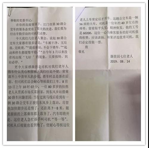 在这封表扬信中,不仅有着这七位老人家和30路公交车驾乘人员的故事,更能反映出司机们与乘客之间可贵的鱼水之情。类似这般让人动容的故事每天都在司机与乘客之间上演,只有时刻牢记并践行“真情伴您行”的服务理念,才能让乘客感受到温暖,使每一次的出行更具有“温度”。
