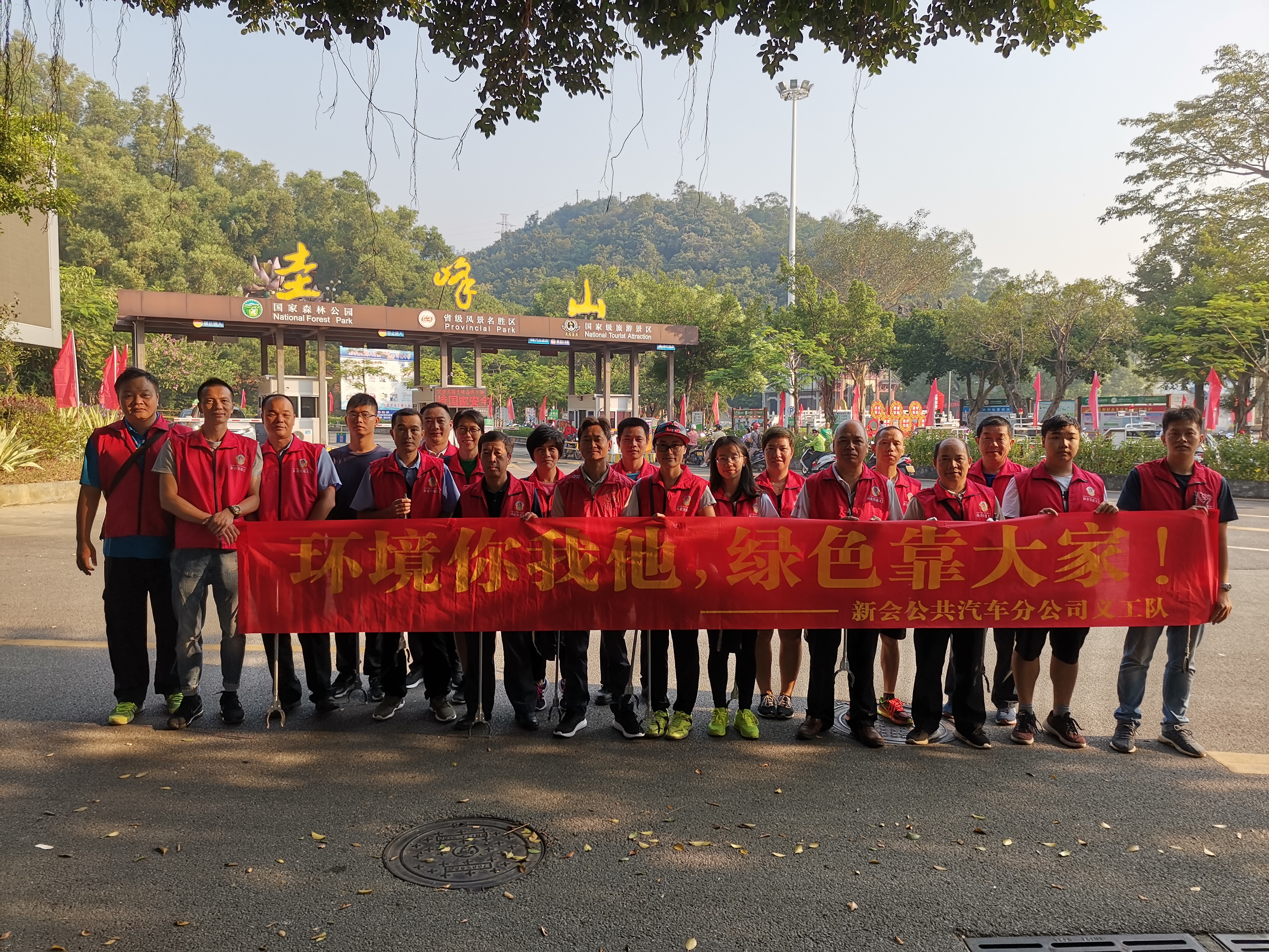 9月29日,新会公共汽车分公司在圭峰山举行了一场以“绿色你我他,环??看蠹摇蔽魈獾闹匮艚诘巧揭骞せ疃?,当天共有29名党员义工参与该活动。