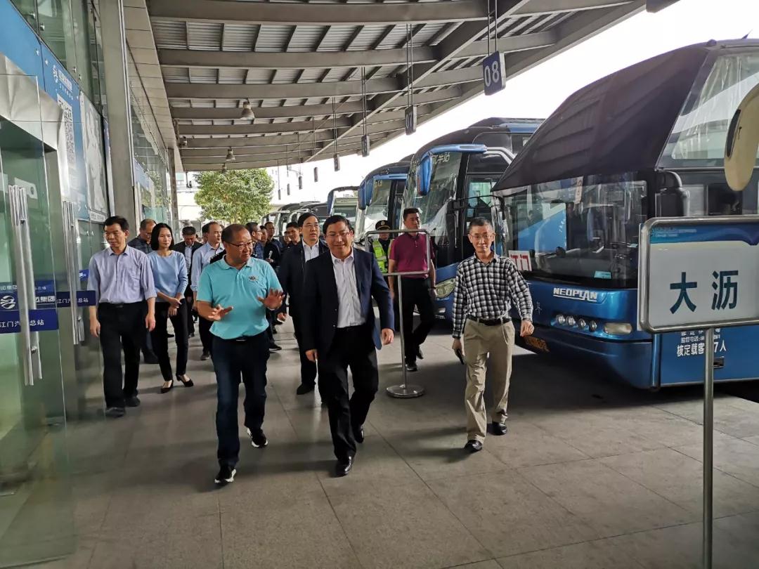 1月10日春运第一天,江门市副市长林飞鸣同志一行到江门汽车总站检查春运工作。江汽运集团党委书记、董事长吕俊杰,党委委员、副总经理李潮元以及江门汽车总站党委书记、总站长林仲尧一起陪同检查。
