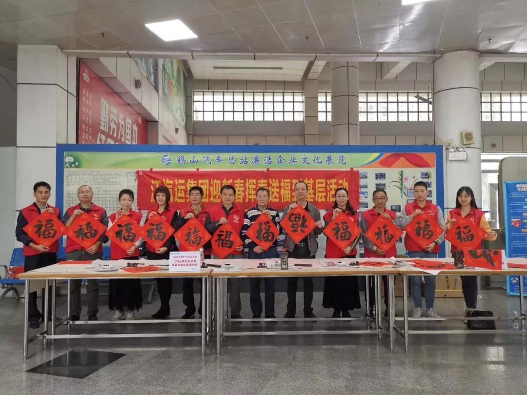 1月6日至10日,江汽运集团特别邀请江门市书法家协会名誉主席陈伟达、名誉主席黄瑞剑两位著名书法家,与江汽运集团书法爱好者一起到各大单位挥春送福送平安,受到了广大员工和旅客的热烈欢迎。