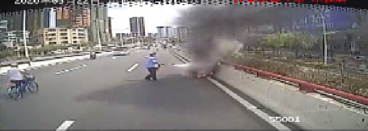 3月22日14时,江门公汽公司驾驶员成世平驾驶53路粤J55081公交车返城轨方向,当行驶至胜利桥下桥时,发现下桥右侧有一台摩托车自燃,火焰的蔓延很快燃烧了起来,并且火势愈来愈大,胜利大桥车流量较大,如发生二次爆炸,后果不堪设想。成世平迅速将公交车行驶至距离起火点较近的安全地带,并将公交车平稳???/span>,取出灭火器将火熄灭。仅仅用时不到一分钟便将火势完全扑灭,成功保护了人民群众的生命财产安全。在确认起火车辆没有复燃迹象后,他才回到车上继续营运。