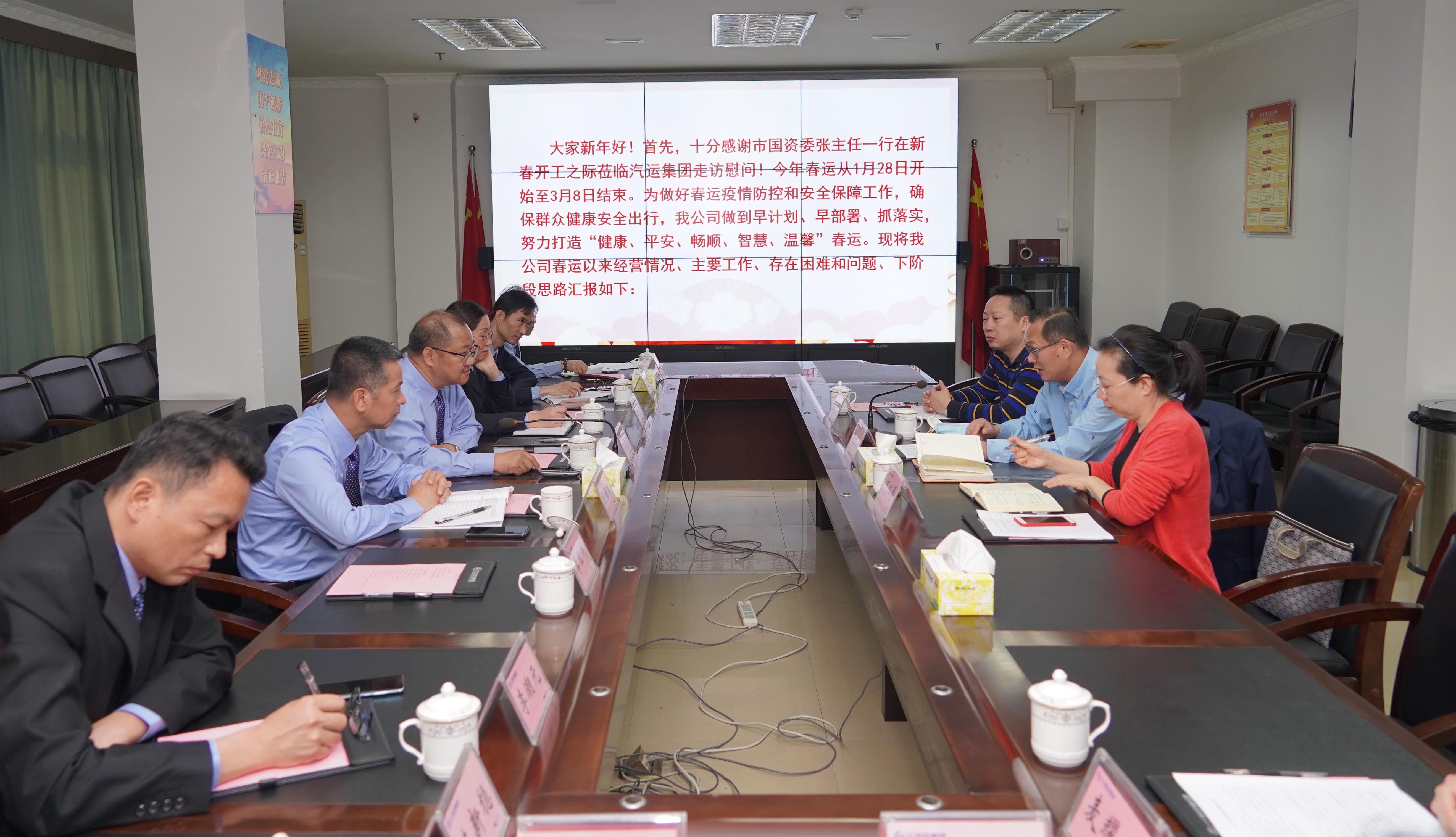 2月19日,市国资委党委委员、副主任张义栋带队到市汽运集团开展新春走访调研,激励企业主动谋划新一年工作,努力起好步、开新局。集团公司党委书记、董事长吕俊杰,党委副书记、总经理区海棠,党委副书记、工会主席冯洁文等领导班子成员及集团相关部门和单位负责人参加调研。