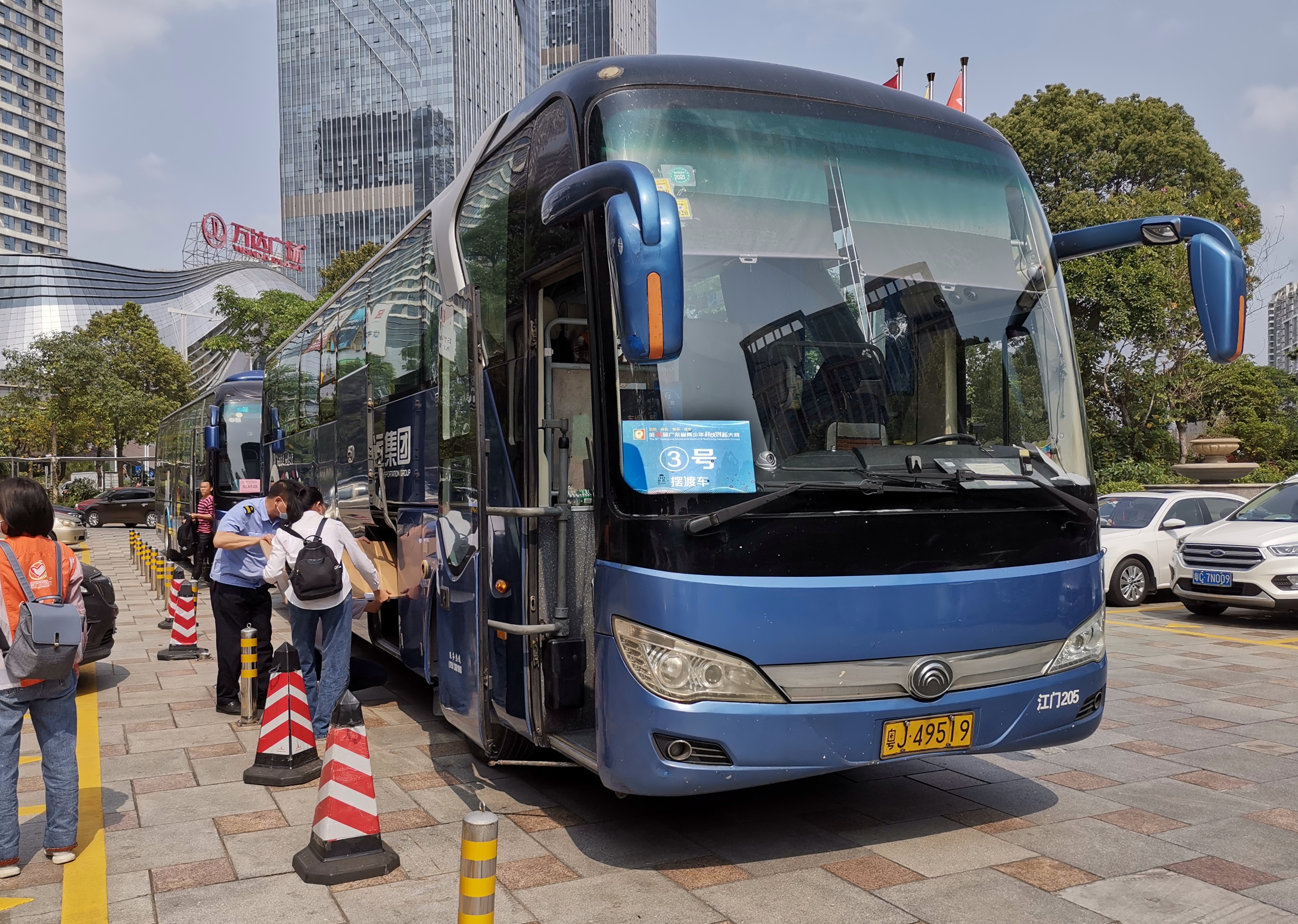 江门汽车总站为满足客户的接送需求,在活动期间派出17辆旅游车作为接送用车,以及精选17名优秀专业驾驶员,严格按照防疫及安全行车的相关工作要求,落实各项安全措施,准时准点地穿梭于学校、酒店和赛场等每个节点,全力为活动人员的出行保驾护航。