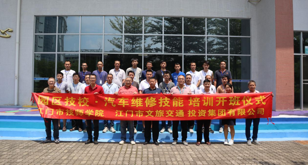 7月25日,江门文旅交通集团与江门市技师学院联合举办小汽车维修技能提升培训班。集团公司技术设备部经理梁启朝、副经理黄志伟,技师学院培训部副部长莫志威、汽车工程系主任禹德伟、外联中心主任刘波林等出席开班仪式,集团公司属下各运输单位学员共21人参加培训。