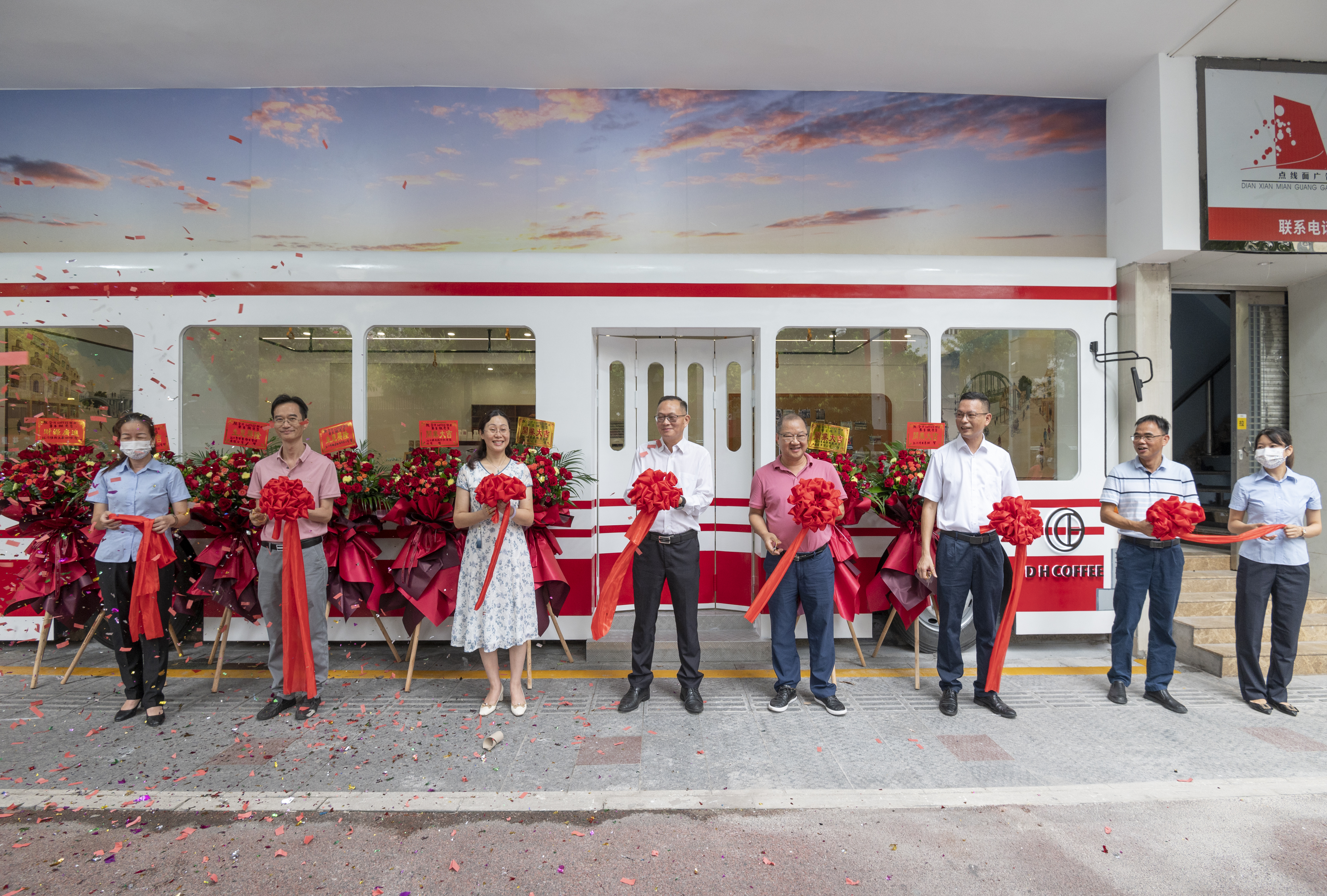 9月28日,江门文旅交通集团旗下【D·H Coffee】東湖咖啡怀旧客车概念店在江门市蓬江区白沙大道西13号举行简约的开业仪式,江门发展集团党委书记、董事长张义栋,江门文旅交通集团党委书记、董事长吕俊杰以及班子成员,集团公司各部门及属下单位相关负责人等出席开业仪式。