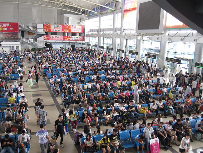 9月18日15:00时从江门汽车总站的售票大厅里看到,来这里买票的队伍已经从大厅里排到了大厅外。
