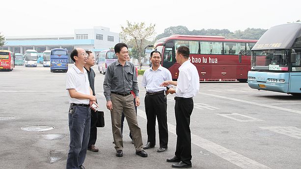 10月29日上午,茂名市交通建设投资集团有限公司董事、副总经理吕锦荣一行莅临江门汽车总站参观指导工作,并与集团公司、江门汽车总站领导举行了亲切友好的座谈会。会上,集团公司电算中心经理李荣进对该站电脑售票系统的开发与应用作了详细介绍,副总站长郑海涛也介绍了该站的经营发展情况。会后,吕锦荣副总经理一行在集团公司董事长、党委书记吕俊杰以及江门汽车总站相关领导陪同下,参观了该站的站场设施及电脑售票系统。(江门汽车总站)