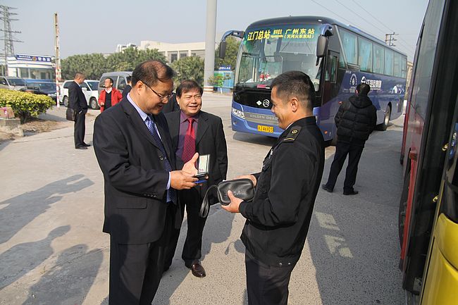 1月16日春运首日,集团公司董事长、党委书记吕俊杰亲自担任组长,带领公司全体领导班子成员,公司安全、技术、GPS监控中心等管理部门负责人,以及属下各汽车总站领导、车队领导等共同组成的春运检查组,到该公司营运车辆运行较多的新会司前路段、325国道振华路段、江沙公路雅瑶路段、325国道雁山路段等检查春运车辆安全运行情况。