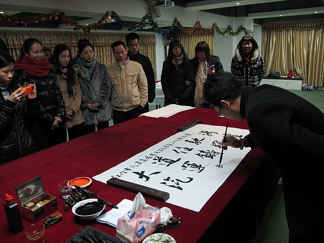 为增强企业员工凝聚力,提高广大员工文化修养,2月12日晚上,台山汽车总站邀请台山市书法协会会长甄伟章和民间书法家林焕权来到该站的“员工之家”,开展“爱我汽运,颂我汽运”书法培训。