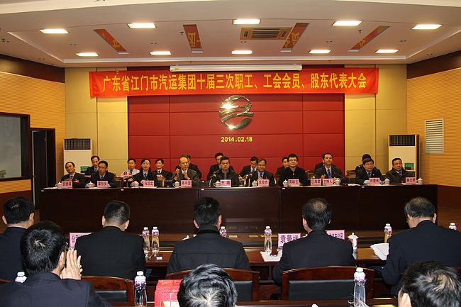2月18日,广东省江门市汽运集团有限公司第十届三次职工、工会会员、股东代表大会在江门汽车总站北区四楼会议室隆重召开。出席会议的174名代表欢聚一堂,共商企业发展大计,为实现集团公司2014年的经营目标进言献策。市总工会常务副主席王雄、市国企工委副书记黄峭云,市建设集团董事长陈中坚应邀出席了大会并讲话。