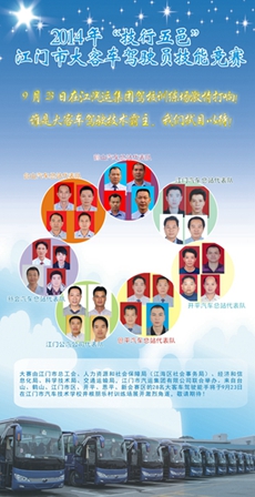 2014年“技行五邑”江门市大客车驾驶员技能竞赛,于9月22-23日在江汽运集团驾校训练场激情打响!大赛由江门市总工会、市人力资源和社会保障局、市经济和信息化局、市科学技术局、市交通运输局,市汽运集团联合举办。来自台山、鹤山、江门市区、开平、恩平、新会赛区的28名大客车驾驶能手将展开激烈角逐,敬请期待!
